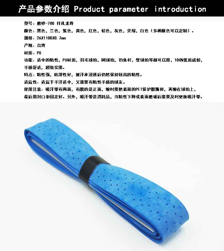 龍骨吸汗帶是微粘性吸汗帶,更加促進手感!增強你的擊球能力!對羽毛球拍、網球拍、魚竿、啞鈴等等手拿器材最具有效的提高握感增強,防菌防霉,超強的吸汗功能(含透氣孔)龍骨吸汗帶背面帶骨,抓感性強,手握扎實。